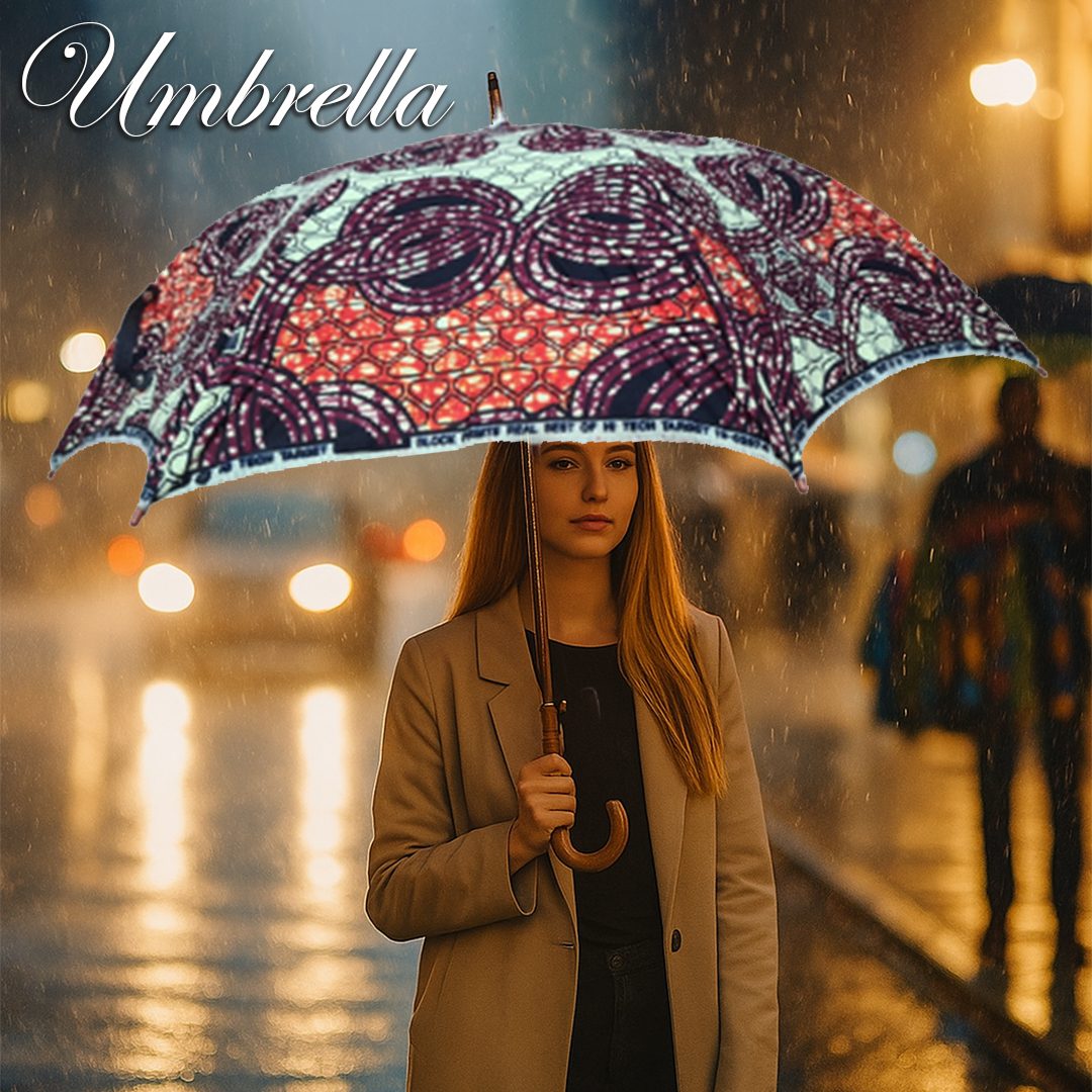 Stay dry with style this year. With this unique folding African Wax Umbrella.