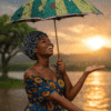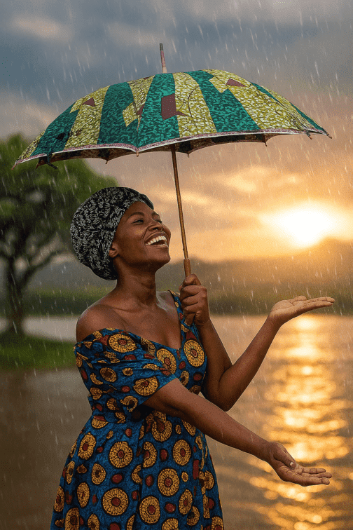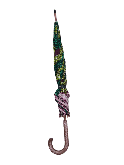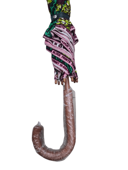 Stay dry with style this year. With this unique folding African Wax Umbrella.