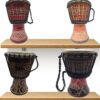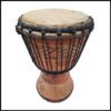 A djembe or jembe is a rope-tuned skin-covered goblet drum played with bare hands, originally from West Africa. According to the Bambara people in Mali, the name of the djembe comes from the saying “Anke djé, anke bé” which translates to “everyone gather together in peace” and defines the drum’s purpose.