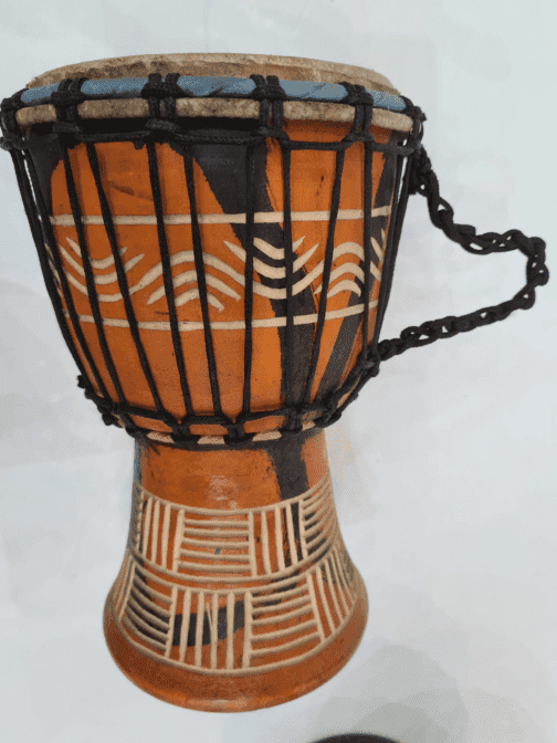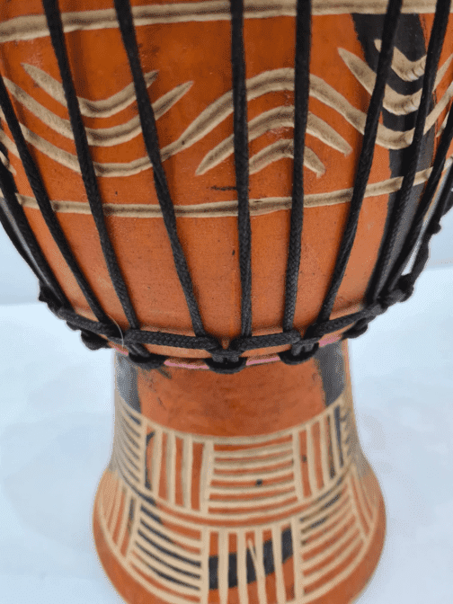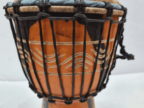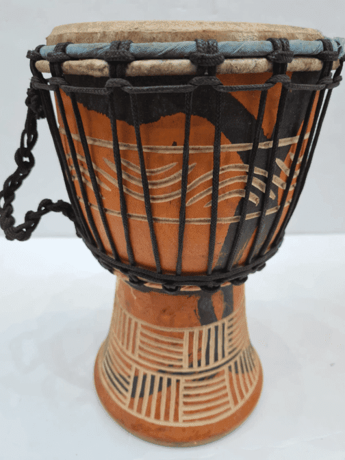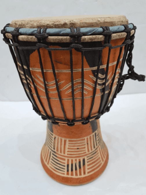 A djembe or jembe is a rope-tuned skin-covered goblet drum played with bare hands, originally from West Africa. According to the Bambara people in Mali, the name of the djembe comes from the saying “Anke djé, anke bé” which translates to “everyone gather together in peace” and defines the drum’s purpose.