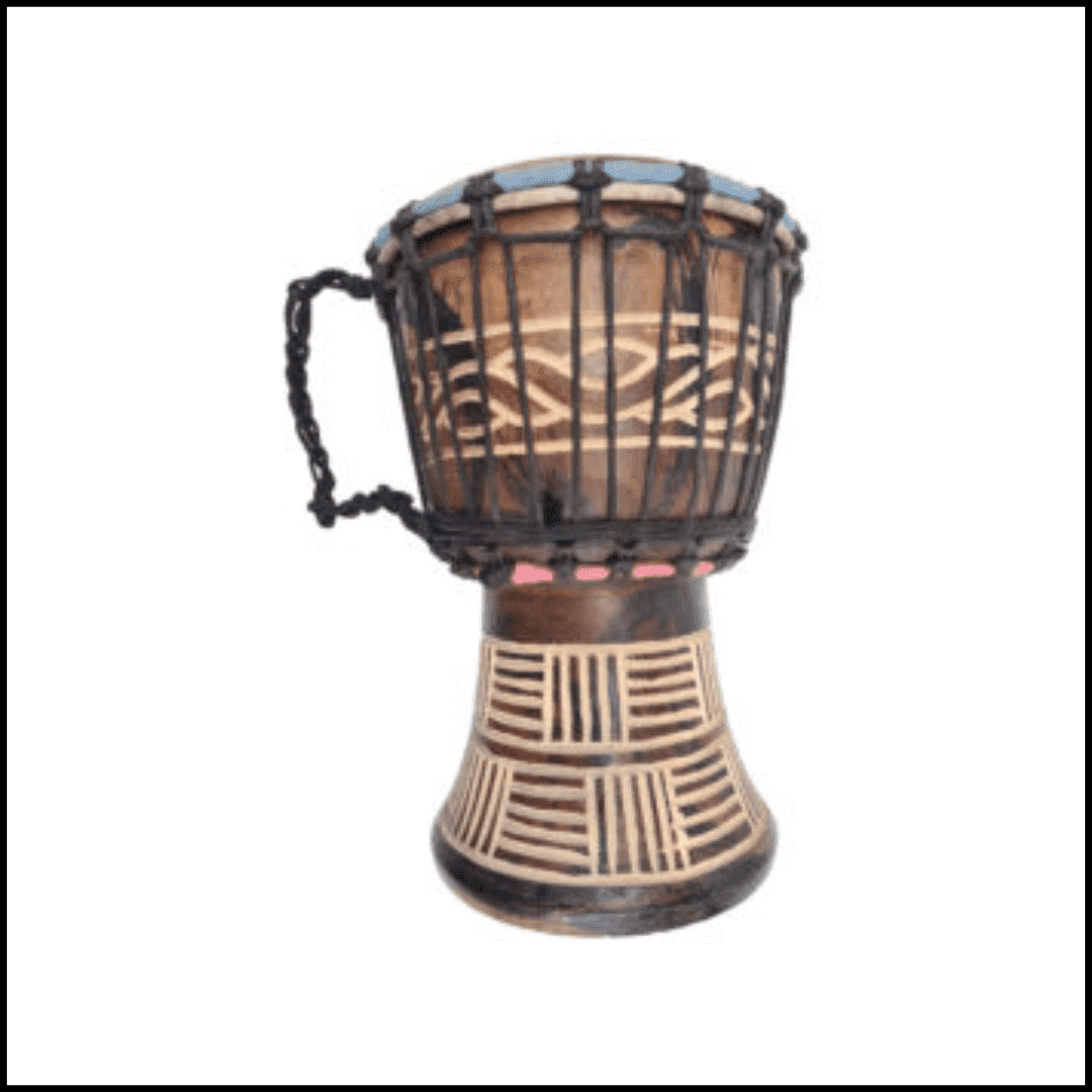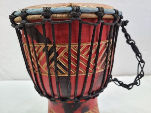 A djembe or jembe is a rope-tuned skin-covered goblet drum played with bare hands, originally from West Africa. According to the Bambara people in Mali, the name of the djembe comes from the saying “Anke djé, anke bé” which translates to “everyone gather together in peace” and defines the drum’s purpose.