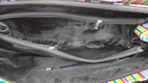 There is a single zip pocket inside for keeping money and coins. It has a adjustable strap which can be adjusted to your height.