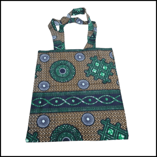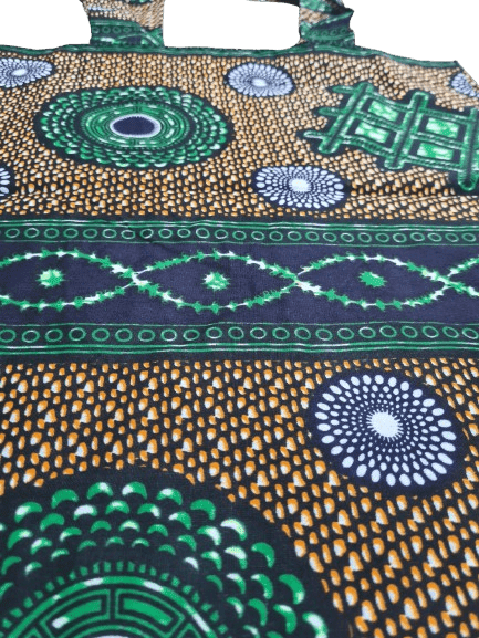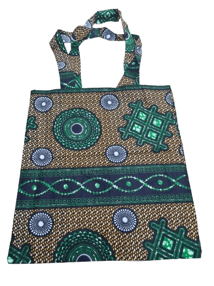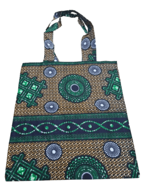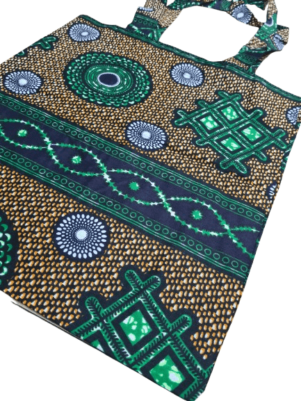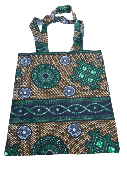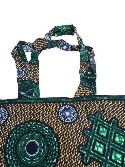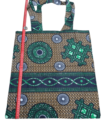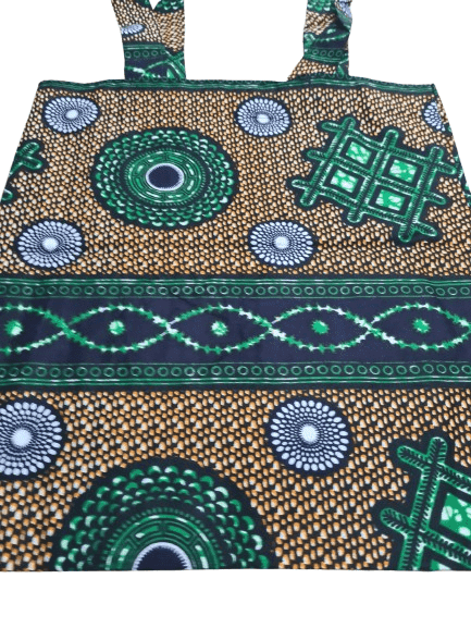This vibrant tote bag is crafted from high-quality African prints cotton fabric, known for its durability and unique patterns. The bag is not only reusable but also eco-friendly, making it a sustainable choice for everyday use. Featuring long, comfortable handles, this tote bag can easily be slung over your shoulder, allowing for effortless carrying.