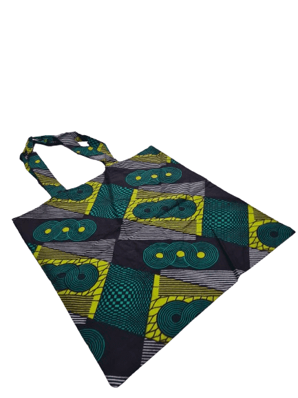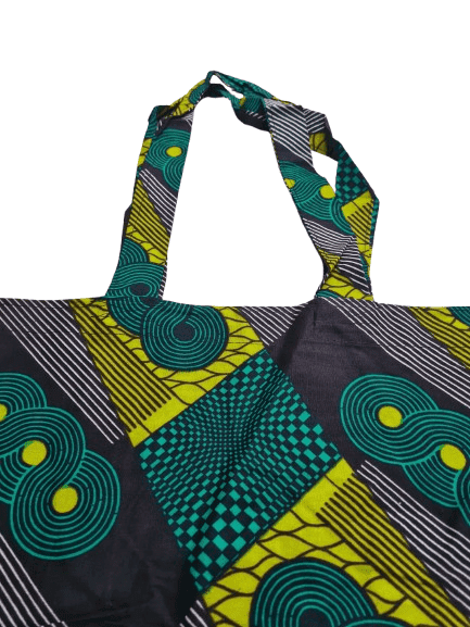 This vibrant tote bag is crafted from high-quality African prints cotton fabric, known for its durability and unique patterns. The bag is not only reusable but also eco-friendly, making it a sustainable choice for everyday use. Featuring long, comfortable handles, this tote bag can easily be slung over your shoulder, allowing for effortless carrying.