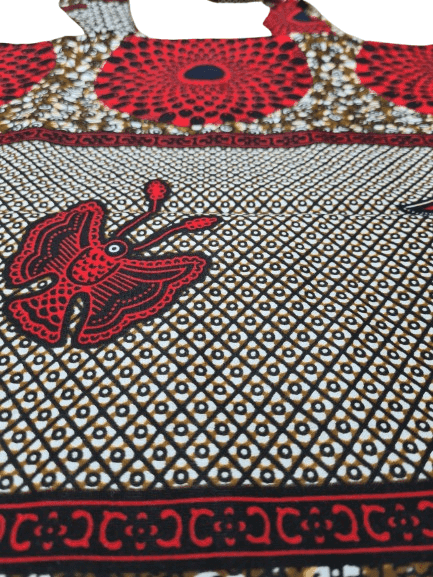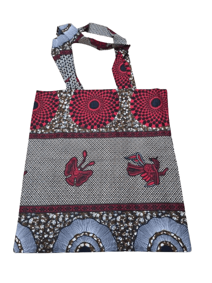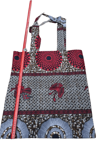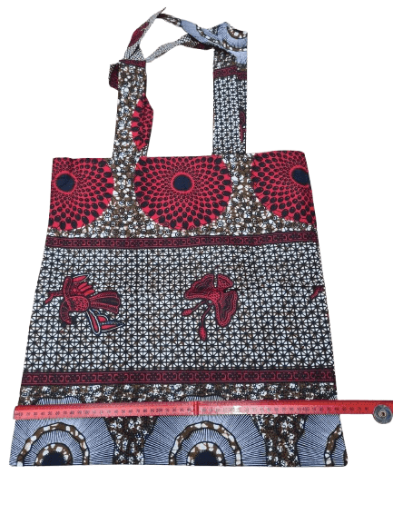 This vibrant tote bag is crafted from high-quality African prints cotton fabric, known for its durability and unique patterns. The bag is not only reusable but also eco-friendly, making it a sustainable choice for everyday use. Featuring long, comfortable handles, this tote bag can easily be slung over your shoulder, allowing for effortless carrying.